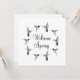 Pretty "Welcome Spring" card featuring Ruby-throated hummingbirds on a white background.