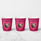 Personalise these bling red ruby wedding anniversary party paper cups with your own 40th anniversary couples names, photo, date and years of marriage. Other matching items are available. Red rubies heart effect graphic art and design by Sarah Trett for www.mylittleeden.com and www.mylittleedenweddings.com
