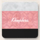Ruddy Pink Batik Grey Watercolor And Name Coaster