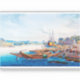 Digitally restored and enhanced: Rüdesheim from the Southwest, as Seen from the Rhine Harbour in Bingen - an aquatint by
