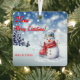 Christmas Metal Square Ornament depicting Rudolph the Reindeer set against a serene blue backdrop. The festive square ornament features a charming image of Rudolph, the beloved reindeer, evoking the spirit of Christmas. The background showcases a wintry scene, complete with a snow-laden tree and delicate snowflakes. This metal ornament captures the essence of the winter season and the joy of Christmas with its depiction of Rudolph on a blue wintery background with a tree and snowflakes.