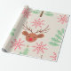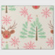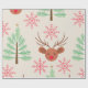 Modern Rudolph Christmas Wrapping Paper. Christmas trees, red snowflakes and Rudolph the deer. Cream background.