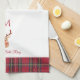 stylish red black tartan,rustic christmas custom monogram,personalised customised kitchen towel,personal name check pattern,scottish checked chequered dishcloth,add your own royal text,merry xmas family surname,fancy plaid initialled initial,classic traditional rudolph reindeer,christmassy xmasy reindeers sleigh