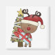 Rudy Reindeer wears a red and white Santa stocking cap as he puts gifts beneath the decorated holiday Christmas tree on Rudy Reindeer Holiday Tree T-shirts, hoodies, mugs, cards, stickers, tote bags, magnets, keychains, ornaments, pillows, and other holiday apparel and gifts.