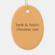 Ornament featuring an orange rufous hummingbird in flight, in a stunning pose, with his head tilted toward you as if to say "Look at me and how glorious I am!" He is really showing off his spectacular brilliant orange throat feathers (gorget). This ornament is easily personalized with names and text, creating a unique beautiful gift that hummingbird, nature and garden lovers will cherish and enjoy for years. Photo taken at Pasadena, California.