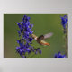 Rufous Hummingbird, Selasphorus rufus, female in flight drinking from Tall Larkspur, Delphinium barbeyi, Ouray, San Juan Mountains, Rocky Mountains, Colorado, USA � Rolf Nussbaumer / DanitaDelimont.com