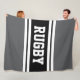 RUGBY Athletic Grey Black White Racing Stripes Fleece Blanket