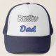 Rugby vader. Vrolijke pet. Kleuren: blauw, wit en zwart. Leuk om als trotse vader te dragen.