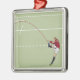 Rugby player kicking ball into touch, dotted metal tree decoration