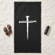 Rugged simple design: three white nails interlaced to make the Christian Cross.