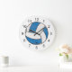 Sports themed wall clock printed in black, blue and white colours with a grunge textured style volleyball in the centre and optional initials. Your choice of square or round. Change the hands' and background colour if desired.. Great for a kid's room, dorm room or the man cave.