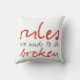 Rules are made to be broken throw pillow from the Breathe In novel by Martha Sweeney.