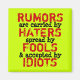 Original Design. Copyright. CHANGE BACKGROUND TO ANY COLOR. RUMORS ARE CARRIED BY HATERS SPREADED BY FOOLS AND ACCEPTED BY IDIOTS. Please be aware that this has been intentionally misspelled, but it can be corrected at your discretion. I was misspelled to express a sentiment. Gossip, philosophy. Add your own image and / or words. Change background to any colour. Give as a gift to yourself or a loved one! Great for personal, family events, advertising, humanitarian awareness, environment awareness, promotions or business events! Great for RESALE. The more you order the more you save money! Copyright. Match with other items. **********CustomerService*********If you have any questions or difficulties with an order please call TEL: 1-888-892-9953 in the USA or (408) 983-2800 International. Hours: 8AM to 6PM PST (11am-9pmEST), Monday - Friday. $$$$$$$$COMMISSION$$$$$$$$ You can make 15% commission if you link my store and/or any single product to your store, personal website, facebook, etc. Very easy and FREE! Contact Customer Service. PS: YOU MAY ADD ANY OF MY ART ON YOUR FACEBOOK OR TWITTER OR ANYWHERE ELSE AS LONG AS YOU STATE THAT IS FROM GalleriaofArt.com! (Even better if you link & make money $$) THANKS SO MUCH!
