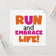 If you love to run, run 5Ks, 10Ks, half marathons, or marathons, you'll love this colourful text design in orange and hot pink that reads Run and Embrace Life! Run and Embrace Life T-shirts, hoodies, magnets, buttons, cards, stickers, key chains, and lots of other items for runners who love a bright, colourful running design!