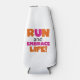 Run and Embrace Life text T-shirts, hoodies, magnets, mousepads, cards, stickers, key chains, buttons, magnets, paper plates and napkins, gift bags, candy tins, watches, and many other items with a bright pink and orange design. These running theme products make great gifts for anyone who runs for fun, runs track, marathons, half marathons, 10Ks, or 5Ks!
