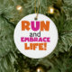 Run and Embrace Life Orange Pink Ceramic Ornament