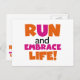 Run and Embrace Life Orange Pink Postcard