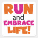 If you love to run, run 5Ks, 10Ks, half marathons, or marathons, you'll love this colourful text design in orange and hot pink that reads Run and Embrace Life! Run and Embrace Life T-shirts, hoodies, magnets, buttons, cards, stickers, key chains, and lots of other items for runners who love a bright, colourful running design!