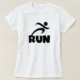 Running T-shirts, mugs, bags, keepsakes, tank tops, hoodies, and other apparel and gifts for runners featuring a black silhouette runner and black text that reads RUN. These RUN apparel and gift items are great for anyone training for a 5K, anyone who just loves to run, or someone who has already accomplished several marathons!