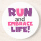 If you love to run, run 5Ks, 10Ks, half marathons, or marathons, you'll love this colourful text design in purple and pink that reads Run and Embrace Life! Run and Embrace life T-shirts, mugs, bags, cards, stickers, key chains, mousepads, iPhone cases, magnets, and much more!