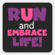 Run Embrace Life Purple Pink Square Sticker