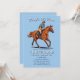 Modern Horse Race Derby Party Invitation with an illustration of a race horse with jockey and striped pattern on the back. All text elements can be changed so this design can be used for other events too: classy equestrian wedding invitation, horse birthday party, derby watch party, horse barn opening and more. Background, colour of the illustration and text colours can be changed using the design tool!