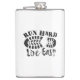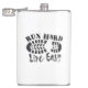 The flask itself is fine. It’s a cheap flask, obviously bought in bulk, however am prepared to overlook that. Given that it is a personalized item, I would have liked to have seen gift boxing instead of the generic packaging. Terrible printing, and/or quality. It’s a cheap, tacky vinyl. It is not cut straight and is also applied in a way that it is overhanging the bottom, causing the glue to catch on items and it will eventually roll and tear, damaging the wrap.
