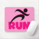 Running T-shirts, mugs, bags, keepsakes, tank tops, hoodies, and other apparel and gifts for runners featuring a black silhouette runner and hot pink text that reads RUN. These RUN apparel and gift items are great for anyone training for a 5K, anyone who just loves to run, or someone who has already accomplished several marathons!