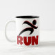 Running T-shirts, mugs, bags, keepsakes, tank tops, hoodies, and other apparel and gifts for runners featuring a black silhouette runner and red text that reads RUN. These RUN apparel and gift items are great for anyone training for a 5K, anyone who just loves to run, or someone who has already accomplished several marathons!