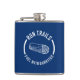 The flask itself is fine. It’s a cheap flask, obviously bought in bulk, however am prepared to overlook that. Given that it is a personalized item, I would have liked to have seen gift boxing instead of the generic packaging. Terrible printing, and/or quality. It’s a cheap, tacky vinyl. It is not cut straight and is also applied in a way that it is overhanging the bottom, causing the glue to catch on items and it will eventually roll and tear, damaging the wrap.