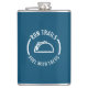 The flask itself is fine. It’s a cheap flask, obviously bought in bulk, however am prepared to overlook that. Given that it is a personalized item, I would have liked to have seen gift boxing instead of the generic packaging. Terrible printing, and/or quality. It’s a cheap, tacky vinyl. It is not cut straight and is also applied in a way that it is overhanging the bottom, causing the glue to catch on items and it will eventually roll and tear, damaging the wrap.
