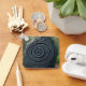 A spiral rune form movement in the style of Glorantha RuneQuest carved into black obsidian rock pillar that is standing in a grove in pleasant forest. By martinspixs.