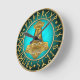 The Norse/Viking god Thor's hammer Mjolnir in gold with Norse-style dragons and triskeles and the elder futhark rune set double-ringed around the edge.
