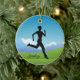 Female Runner Jogger Personalised Ornament with mountain background and customisable text, front and back!