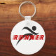 This keyring has the word runner on it that looks like the wind is blowing through it with a silhouette of a running person in the background.