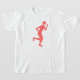 100% cotton so perfect for summer, It is a nicely designed t-shirt, the fabric is soft and the seams finished well, the body of the t shirt has no side seams. I bought a medium size for my two grandsons, aged 9 and 8 it will be slightly big on them but I would rather that than too small
