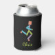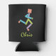 Colourful runner Can Holder in geometric shapes on the front and a group of runners in a pattern on the back. A Name can be added to make it a Custom Gift.