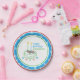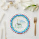 Cute and Personalised Running Shoe sports theme party supplies. A Paper Plate to double as colourful Birthday Decor. Add a Name for Unique tableware.