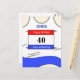 Customisable white running vest postcard, for birthday wishes, good luck or just recording a time achieved at a running or athletics event or meet.