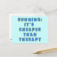 RUNNING: CHEAPER THAN THERAPY Tshirts Postcard