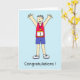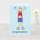 A cartoon man in running gear standing with his arms in the air, with number one on his chest. The word 'Congratulations' is underneath the image.