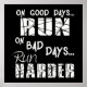 On Good Days Run - On Bad Days Run Harder motivational running quote for long distance, full or half-marathon runner. Proper mindset is essential to reach our race goals. >> Gift idea to motivate runners training for 5k, 10K, Cross Country, Track and Field, Trail runs, or marathons. >> Customisable artwork. Add YOUR OWN personal name or custom message. Click "Personalise" and create your own custom text, add a background shape, graphic, etc. to make your final design.