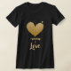 An awesome feminine pretty chic women's black t-shirt featuring a sweet pretty gold splatter watercolor girly heart which has the words "RUNNING ON LOVE" beneath it.