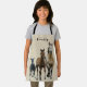 Horses bib apron for girls with her name at the top. Dark tan color with three horses running side by side. Name is printed in black, thin letters across the top.