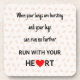 A motivational quote in black script on a background pattern of light brown oak leaves. "When your lungs are bursting and your legs can run no further RUN WITH YOUR HEART". This coaster is great inspiration for anyone who enjoys running - cross country, track, marathon, triathlon, outdoors or at the gym.