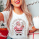 Santa Coffee T-shirt, Holiday Caffeine Tee, Funny Christmas Shirt, Women’s Holiday Tee, Christmas Cheer Shirt.