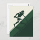This postcard showcases a football player running for touchdown. The design is a green-beige dominant design and it is great for pro-and-amateur football players.