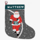 Creative runner Christmas stocking featuring Santa racer running. Edit text to add name.