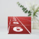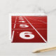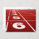 Postcard with a photo of the start line with numbers on a running track. Customisable.