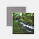 Beautiful green moss & ferns along the runoff waters of Wahkeena Falls in the Columbia River Gorge, Oregon. View of the water flowing under the bridge of the historic Columbia highway.